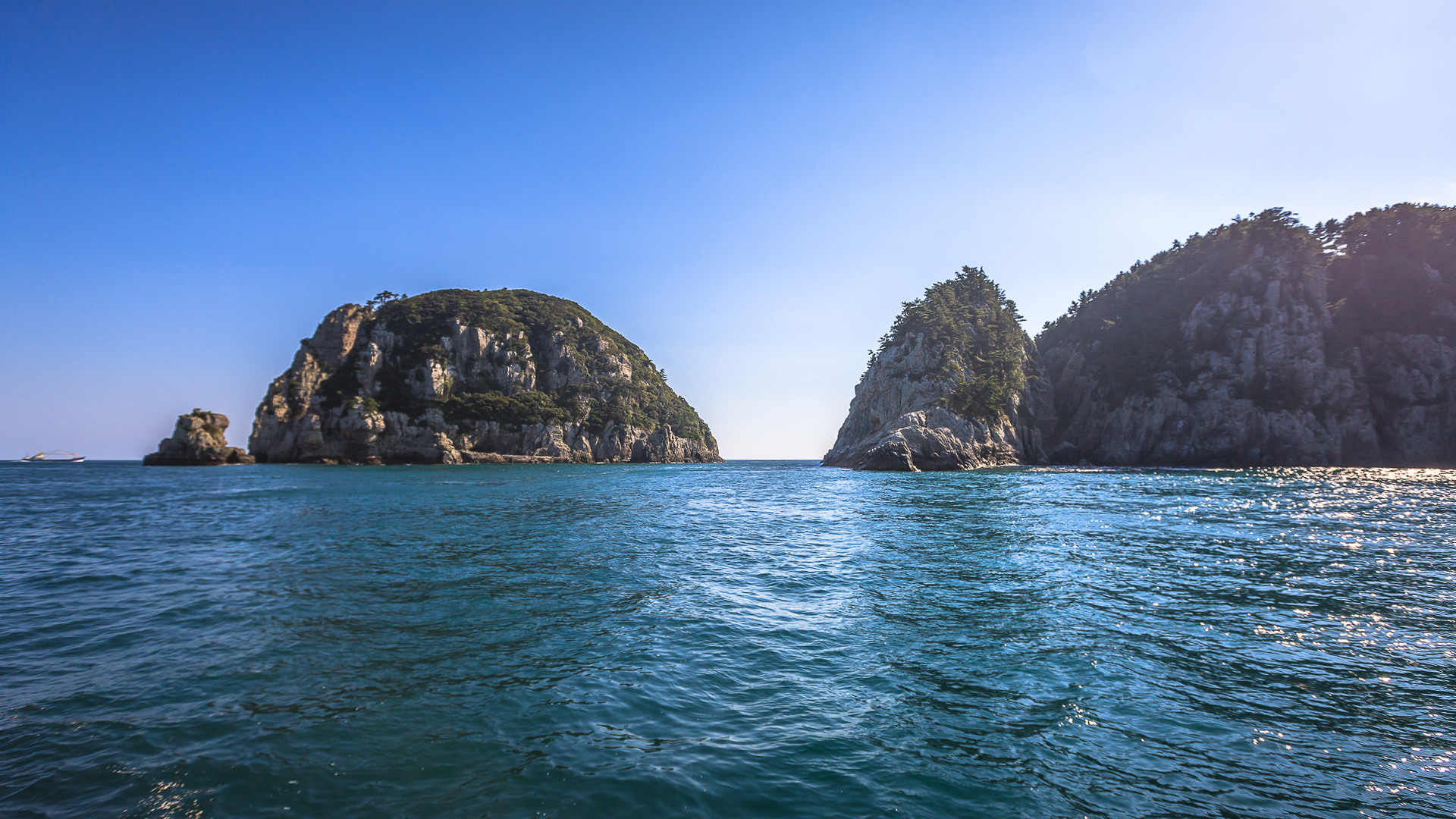 거제시 남부면 갈곶리 해금강마을 남쪽 500m 해상에 위치합니다. 두 개의 큰섬으로 연접한 거제 해금강은 한려해상국립공원에 속하며 1971년 명승 2호로 지정되었습니다. 원래 이름은 갈도(칡섬)로서 지형이 칡뿌리가 뻗어내린 형상을 하고 있다 해서 붙여진 이름이며 갈도보다 남해의 금강산을 뜻하는 해금강으로 널리 불리고 있습니다. 해발 116m 약 0.1㎢의 이 섬은 중국의 진시황제의 불로 장생초를 구하는 서불이 동남동녀 3천 명과 함께 찾았다는 [서불과차]라는 글씨가 새겨질 정도로 약초가 많다 하여 약초 섬이라고도 불렸습니다. 주위의 경관으로는 썰물 때 그 신비로운 모습을 드러내는 십자동굴, 사자바위, 환상적인 일출과 월출로 유명한 일월봉 등이 있습니다.